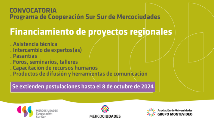 El Programa de Cooperación Sur Sur de Mercociudades extiende su plazo de postulaciones para participar [...]